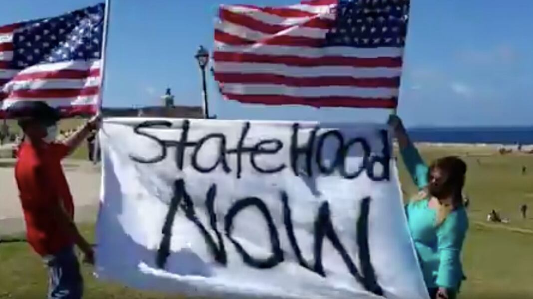 Con motivo de la 104 Conmemoración del Día de la Ciudadanía Americana en Puerto Rico que se celebra con el feriado del próximo martes, 2 de marzo, un reducido grupo de personas se dio cita hoy hasta El Morro, en el Viejo San Juan, para manifestarse bajo la consigna “Statehood now (Estadidad ahora)”