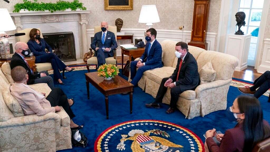 El presidente Joe Biden intentó preservar el impulso bipartidista para un nuevo programa de infraestructura reuniéndose el jueves con legisladores republicanos y demócratas en la Casa Blanca.