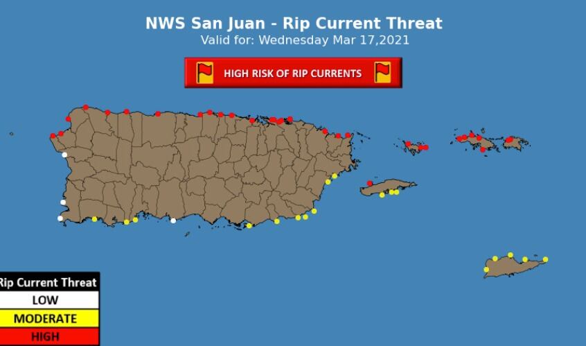 Hay riesgo alto de corrientes marinas desde el noroeste hasta el noreste de Puerto Rico, al menos hasta el viernes en la noche.