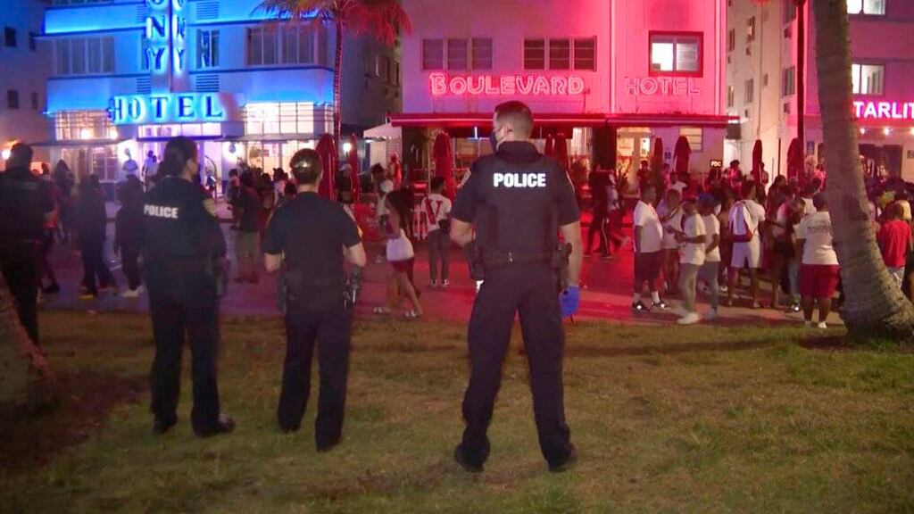 Durante una reunión de último momento efectuada el domingo, las autoridades municipales votaron a favor de extender un toque de queda sumamente inusual que entra en vigor a las 8 de la noche por otra semana más a lo largo de la popular zona de South Beach, con la posibilidad de prorrogarlo hasta abril en caso de ser necesario, y señalaron que esta no es la multitud habitual que visita la ciudad cada periodo vacacional de primavera. Destacaron que no se trata de estudiantes universitarios, sino de adultos que buscan divertirse en uno de los pocos estados del país que está completamente abierto durante la pandemia de coronavirus.