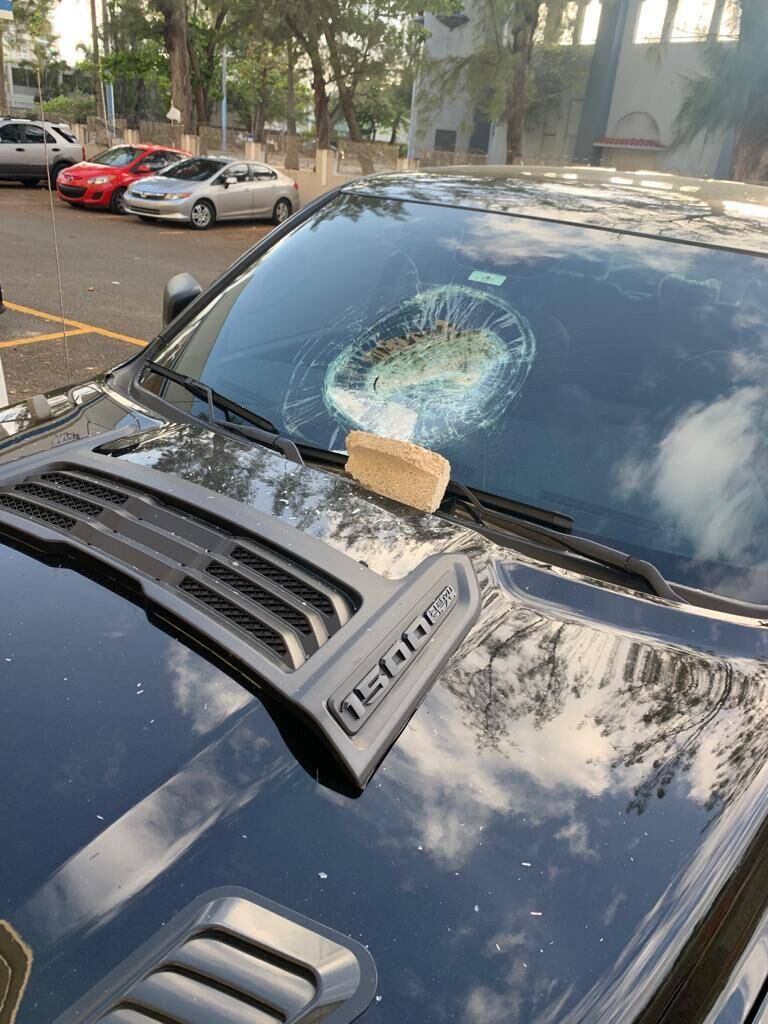 “Cuando analicé la forma en que cayó el bloque, tenía que ser de un piso alto del edificio. La presión con la que bajó traspasó el cristal, fue fuerte”, dijo Vera, al descartar que el bloque que dañó su guagua Dodge Ram pudiera haber sido lanzado por alguna persona desde el suelo.