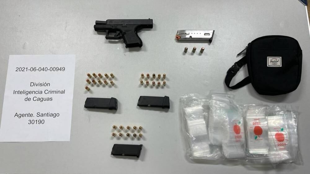 Al momento de la detención a éste se le ocupó una pistola marca Glock modelo 26 calibre 9 milímetros, 4 cargadores, 34 municiones, parafernalia y un vehículo Toyota Tercel año 1991.