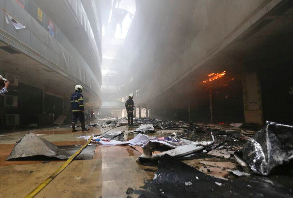 Cuadrillas de bomberos seguían tratando de controlar el incendio, que inició la madrugada del viernes, con 20 camones de bomberos y ambulancias en el lugar, dijo un funcionario en la sala de control del servicio de bomberos. El funcionario habló a condición de mantener el anonimato debido a que no está autorizado para informar a los medios.