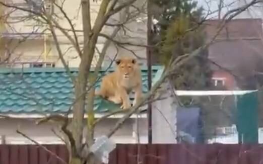Los habitantes del pueblo ruso de Kózino se sorprendieron hace unos días cuando al caminar por el lugar observaron a una leona en el techo de una casa.