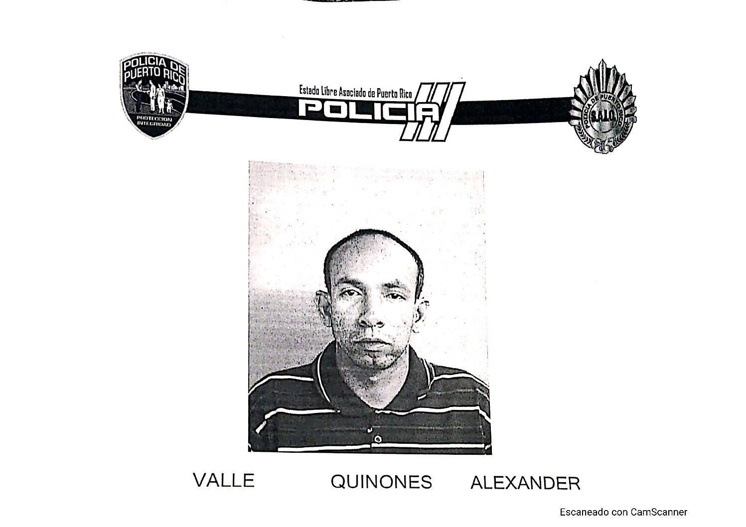El detenido fue identificado como Alexander Valle Quiñones, de 41 años, residente de Isabela, contra quien se haba fijado anteriormente una fianza de 400,000 mil dólares, por el delito de Asesinato en Primer Grado y Ley de Armas, expedida por el juez Orlando Avilés Santiago, del Tribunal Aguadilla.