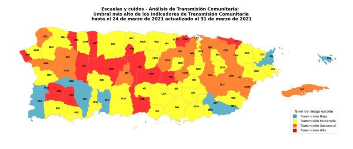 El Departamento de Salud informó al cierre del mes de marzo, que los municipios con alto nivel de contagios aumentaron a catorce en el Informe Semanal del Análisis de Transmisión Comunitaria.