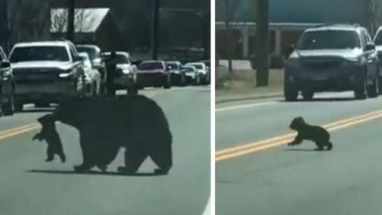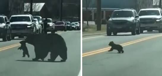 El video que enternece las redes en el que una osa intenta atravesar una avenida con sus cachorros