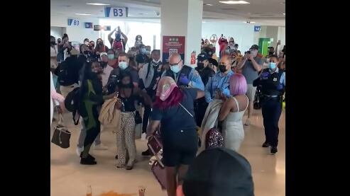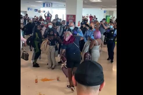 En medio de la intervención policiaca, resultaron agredidos los agentes Pedro Rodríguez Ávila y Miguel Martínez Martínez, adscritos al Precinto del Aeropuerto, por Cynthia Augustin y Naromie St Ange, siendo arrestadas. Por su parte, Sheila Edouard causó daños en el área del recibidor de la línea Spirit, por lo que también tuvo que ser detenida por la Policía.