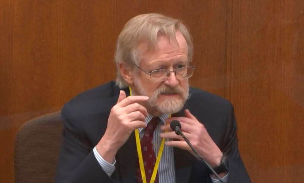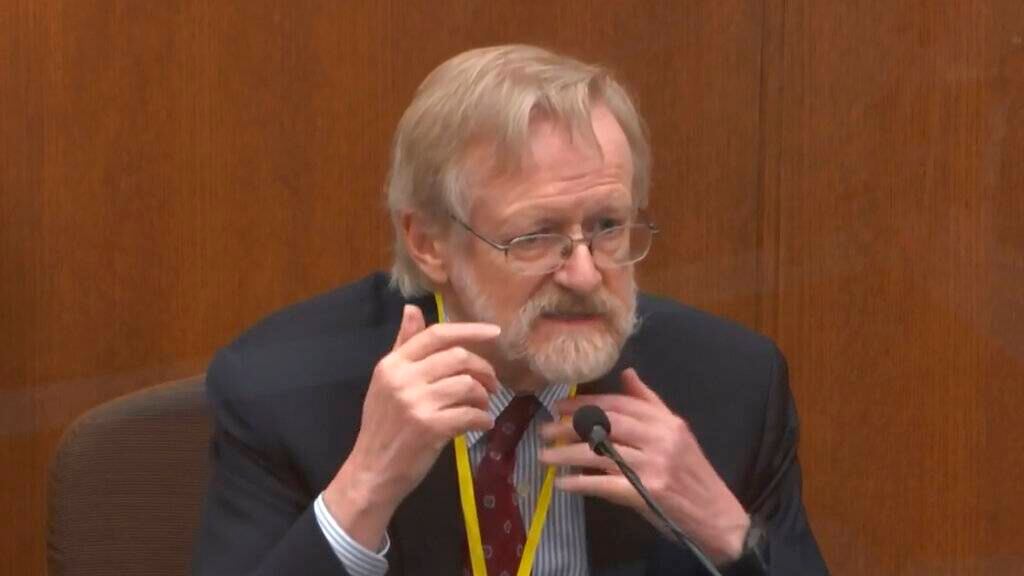 Analizando una presentación gráfica de los tres oficiales que inmovilizaron a Floyd durante más de nueve minutos, el médico dijo que, según sus cálculos, la rodilla de Chauvin estuvo “sobre el cuello (de Floyd) el 90% del tiempo”.