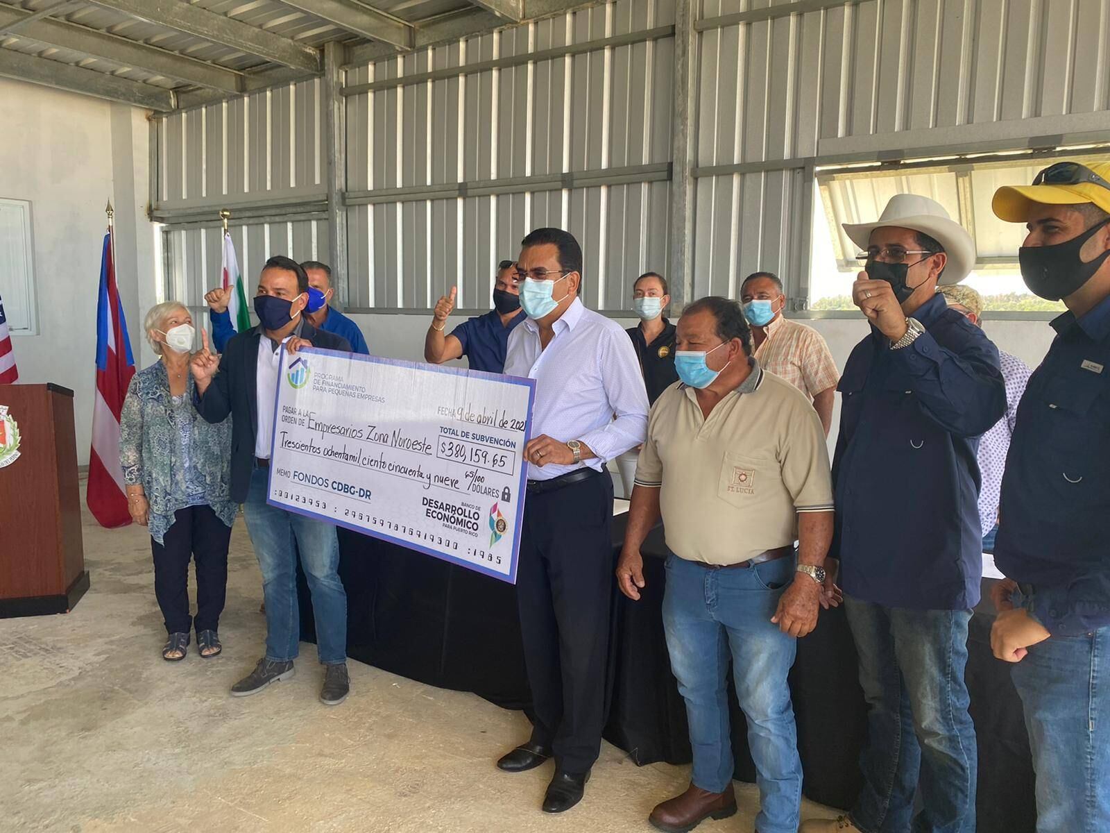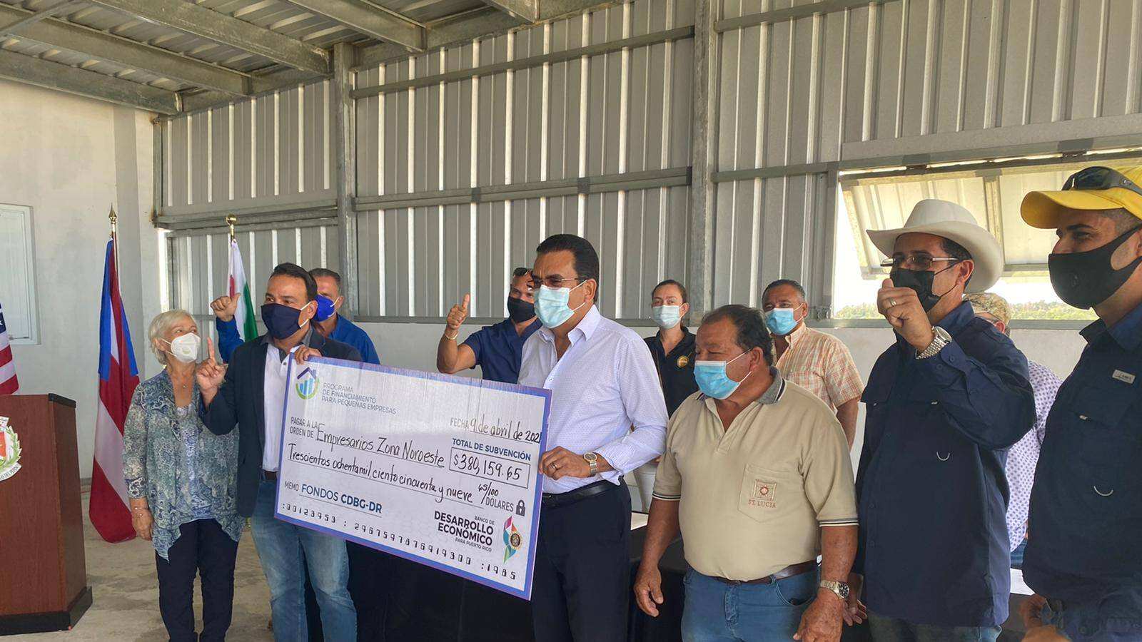 El presidente del Banco de Desarrollo Económico para Puerto Rico (BDE), Luis Alemañy, junto al alcalde del Municipio de San Sebastián, Javier Jiménez Pérez, entregaron hoy $400 mil dólares de subvención federal especial a agricultores que sufrieron pérdidas por el paso de los huracanes Irma y María. Hasta el momento la corporación pública ha logrado otorgar cerca de $4 millones a los agricultores de los $20 millones desembolsados hasta el momento.
