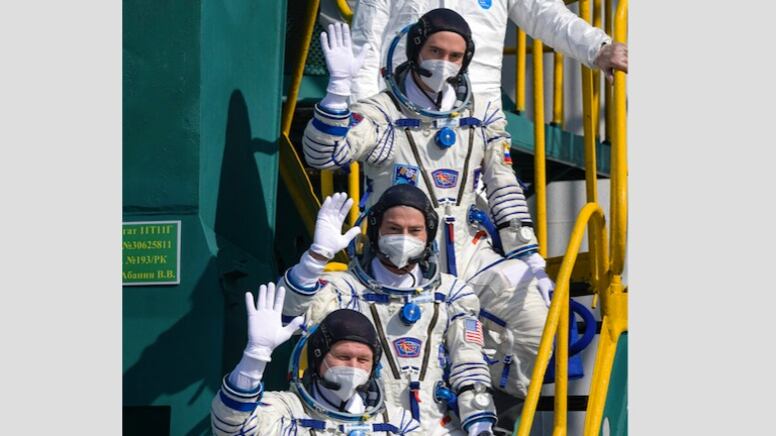 El astronauta de la NASA Mark Vande Hei y los cosmonautas rusos Oleg Novitskiy y Pyotr Dubrov partieron según el horario previsto, a las 12:42, a bordo de la nave Soyuz MS-18 desde la base de lanzamiento de Baikonur, alquilada por Rusia, en Kazajistán.