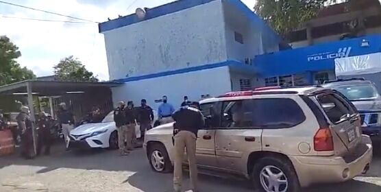 En un video grabado por Radio Atenas y circulado en redes se ve el vehículo implicado con los múltiples impactos de bala frente al cuartel.