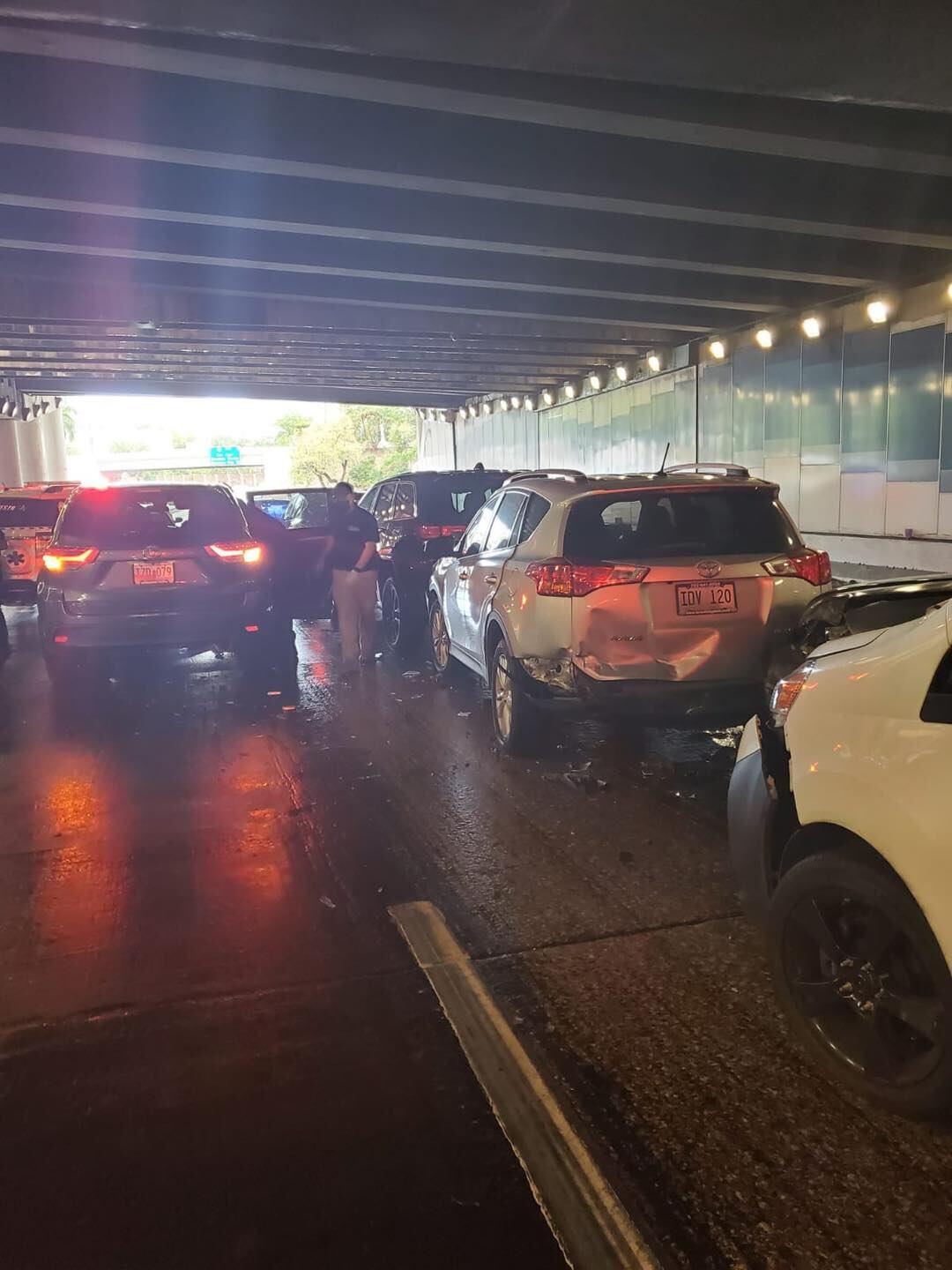 El choque de varios vehículos se encuentra en este momento obstruyendo el carril central izquierdo e izquierdo del Túnel, dejando un solo carril disponible para el tráfico normal.