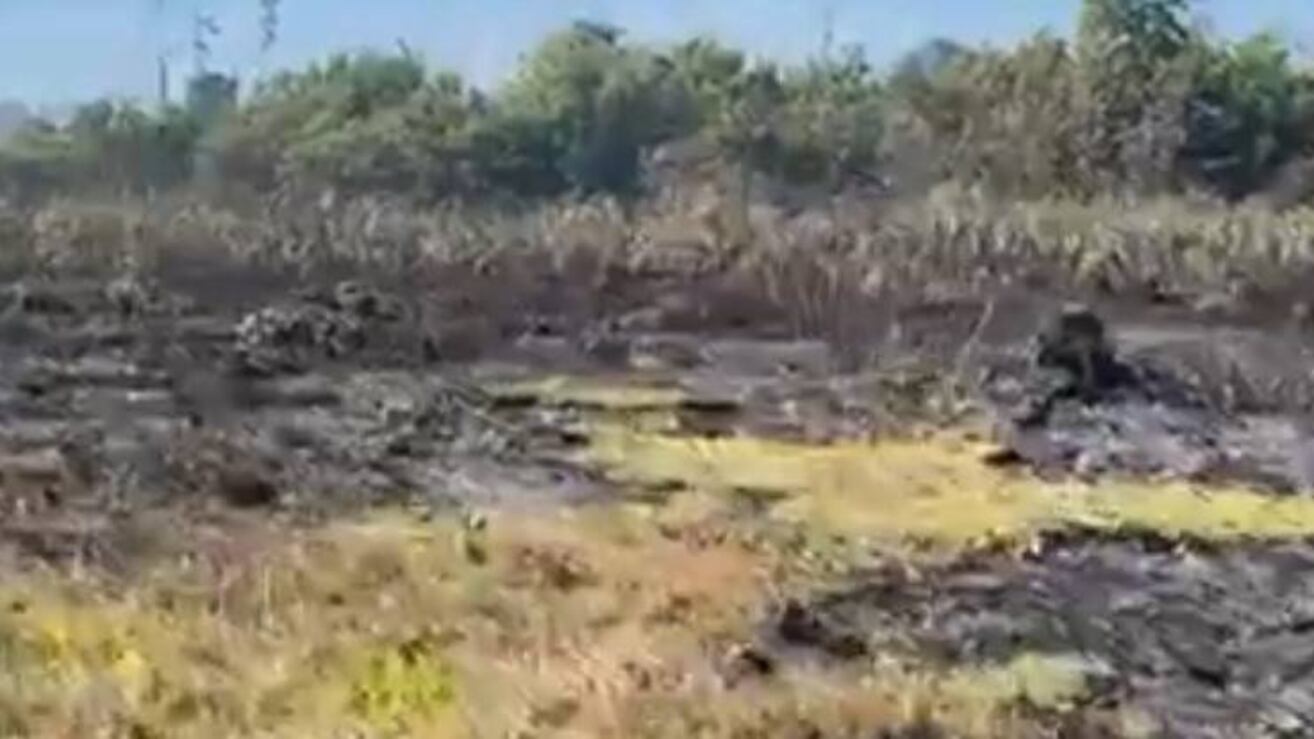 El comandante de zona de Arecibo del Negociado de bomberos de Puerto Rico, Miguel Martínez García, informó hoy, domingo, que el fuego en la finca de Camuy está contenido en el medio de la finca.
