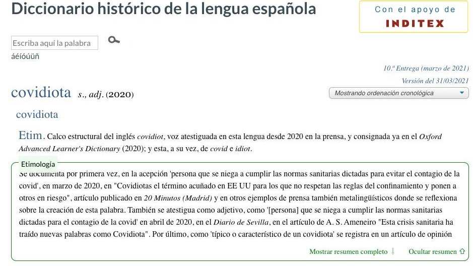 “Persona que se niega a cumplir las normas sanitarias dictadas para evitar el contagio de la covid”, lee la definición de covidiota en la RAE.