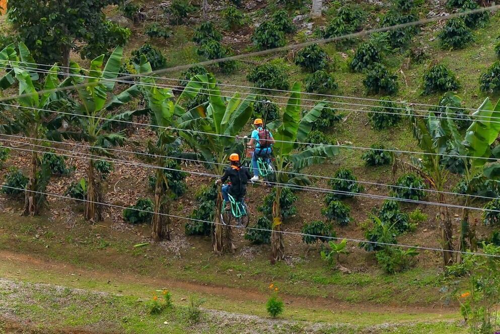 El proyecto completo, que contó con una inversión privada de $1,200,000, consta de cuatro plataformas, en forma de árbol, diseñadas específicamente para no detractar de la zona montañosa y la vista de toda la costa norte de Puerto Rico que ofrece a aquellos que aceptan el reto de hacer el recorrido. El circuito tiene capacidad para cuatro bicicletas simultáneas las cuales se deslizan a través de cuatro estaciones de distintas longitudes, haciendo de la actividad una ideal para disfrutar en familia o con amistades.