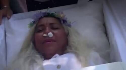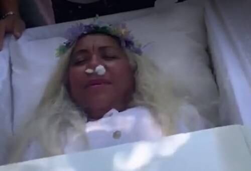 La mujer se colocó una bata blanca, algodones en la nariz y una corona de flores en la frente, mientras estuvo al interior de un ataúd por un lapso de una hora, según consigna Telemundo.