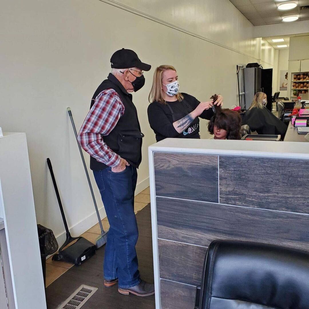 Un adulto mayor fue a una peluquería a aprender a rizar el pelo, porque su esposa ya no puede hacerlo.