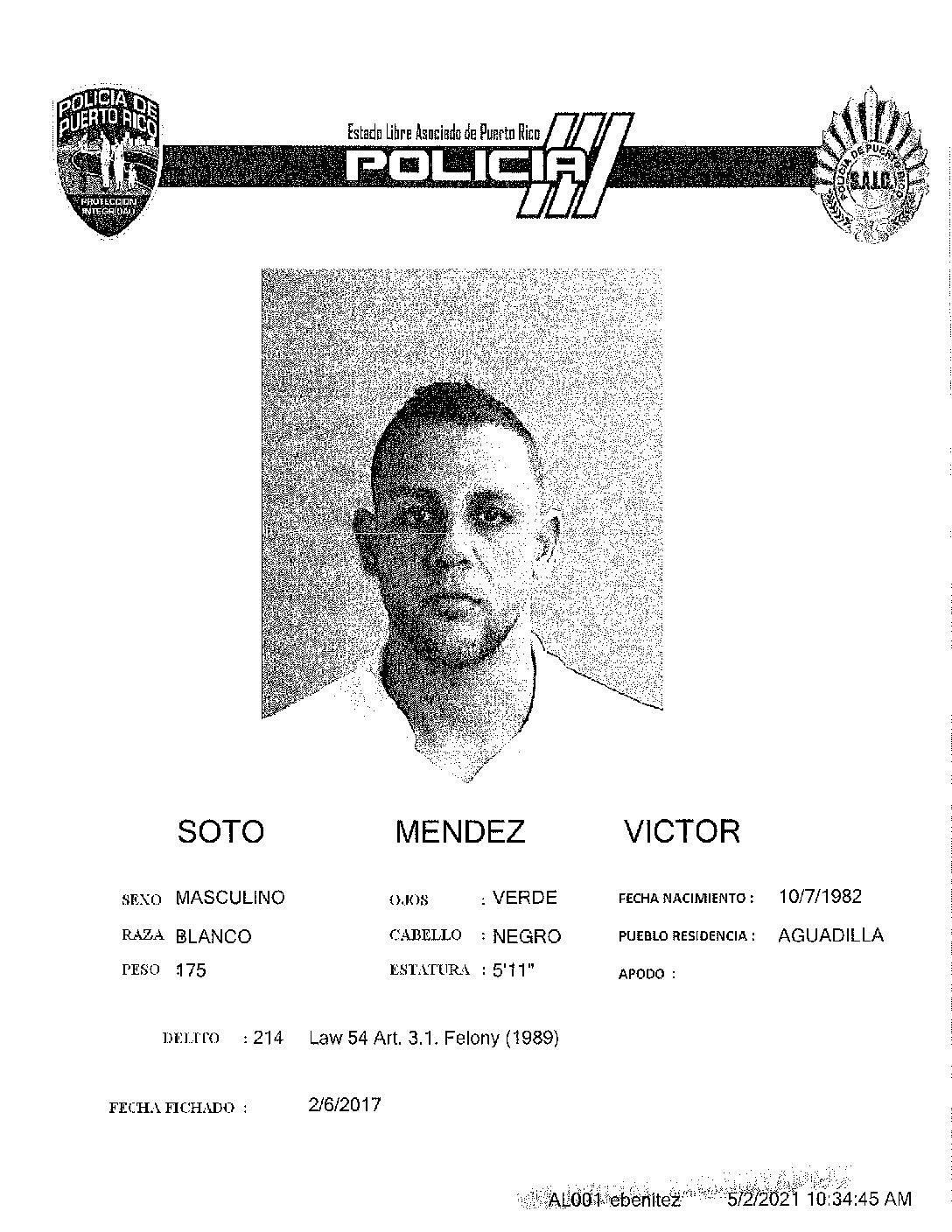 El hombre fue identificado como Víctor Soto Méndez, de 38 años, residente de Aguada, quien fue acusado por por Maltrato Emocional y/o Psicológico, por la Ley 54 de Violencia de Género.