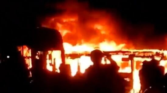 Sin embargo, al momento choca con otro bus que está más adelante, el bus comienza a andar hacia atrás. Las personas presentes se asustan y comienzan a correr. La llamarada de los buses que se están quemando se aviva. Después de esto, el video se corta.