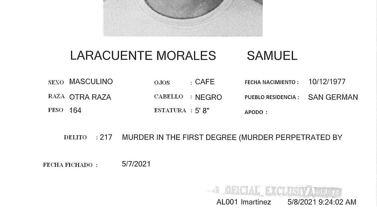 Contra Laracuente Morales pesaba una orden de arresto por violación a la Ley de Armas y tentativa de asesinato.
