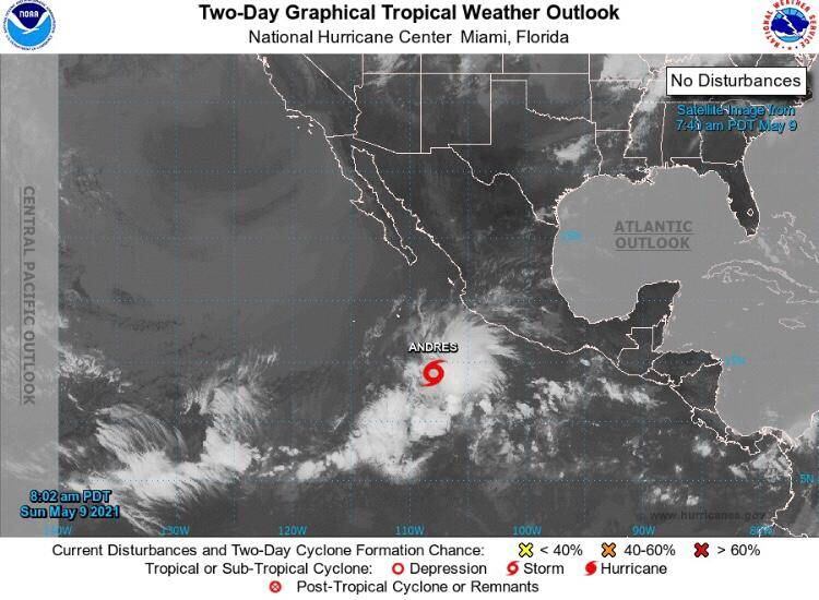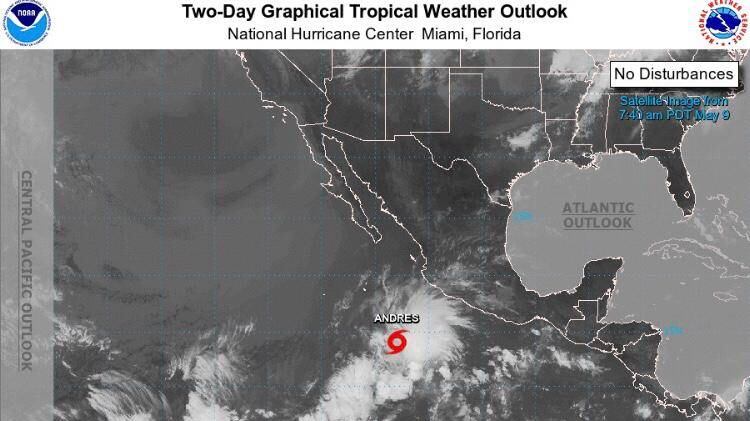 Es improbable que Andrés amenace las costas, indicó el Centro Nacional de Huracanes de Estados Unidos, y pronosticó que permanecerá en el mar y se adentrará en el Pacífico.