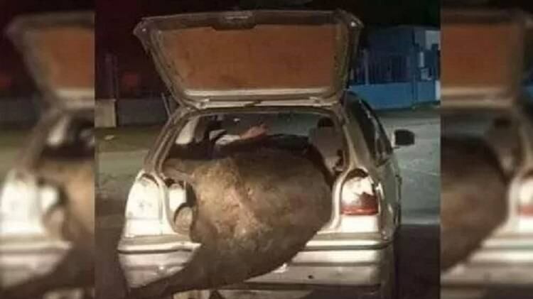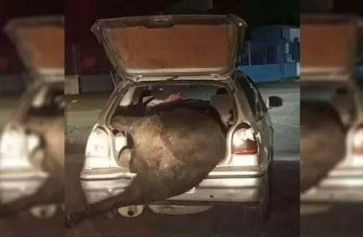 Un conductor que pasaba por el lugar no encontró nada mejor que tomar una vaca de aproximadamente 720 kilos y subirla en el maletín de su automóvil, un Volkswagen Gol .
