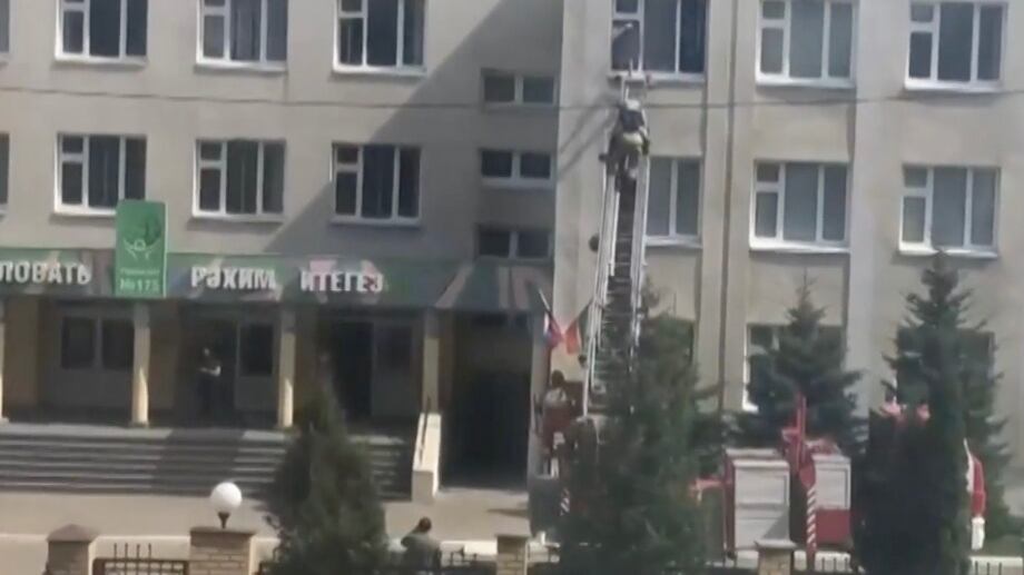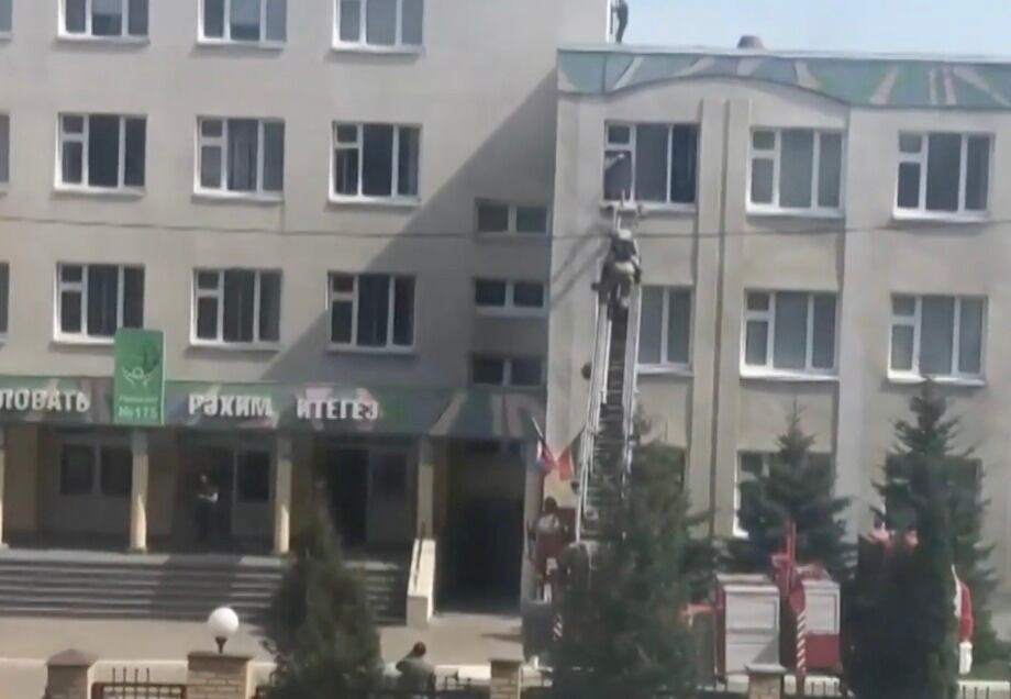 Estudiantes y profesores usaron las ventanas para escapar del atacante armado que abrió fuego el martes en la escuela Nº 175 de Kazán.