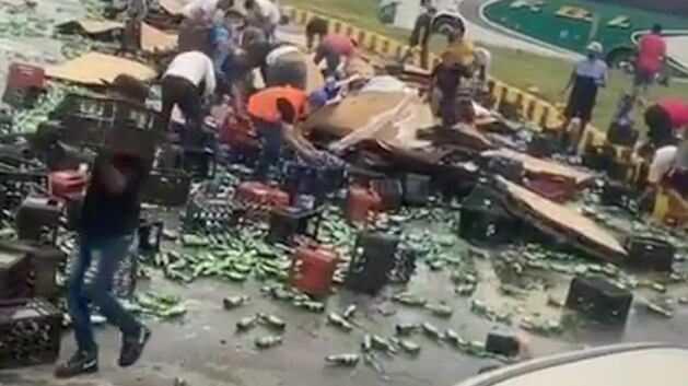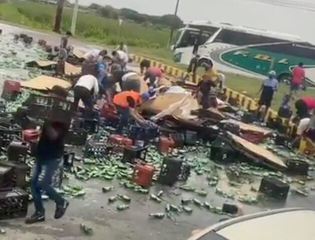 Un camión de cerveza se accidentó en la vía Durán – Yaguachi, en la provincia del Guayas en Ecuador, hecho que fue aprovechado por ciudadanos que estaban en el sitio para llevarse las bebidas.