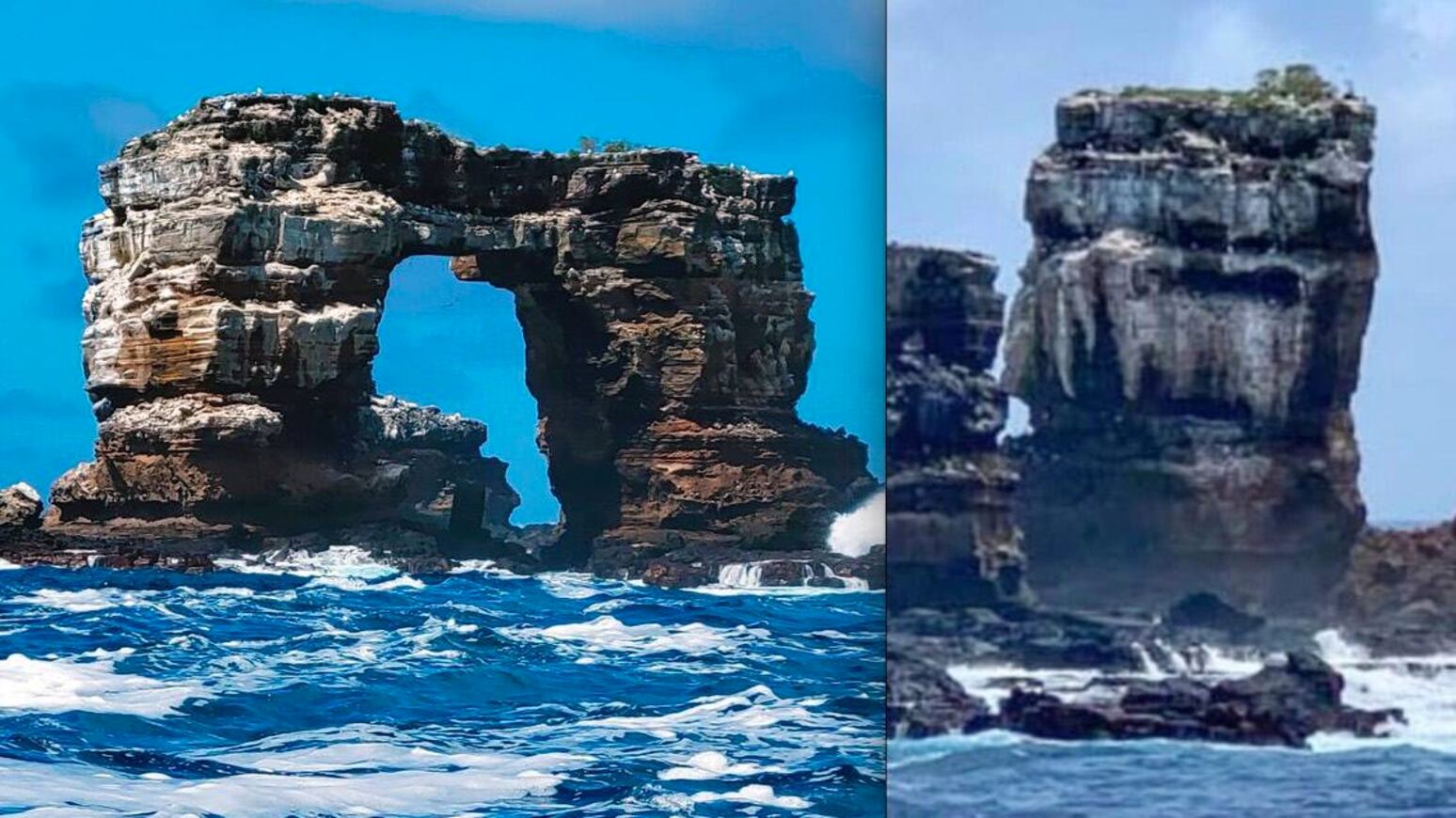 La emblemática estructura denominada Arco de Darwin, cerca de la isla del mismo nombre en el archipiélago de Galápagos, colapsó parcialmente debido a la erosión natural.