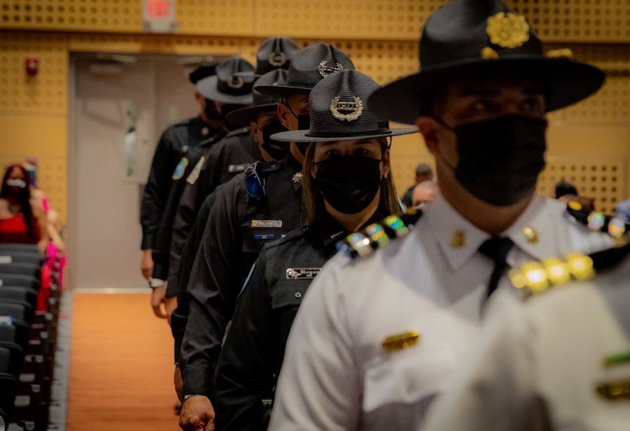 El primer ejecutivo capitalino destacó que durante la participación en la academia los oficiales reciben una preparación minuciosa que consta de 1,100 horas de estudio en diversas áreas de investigación, ejecución y servicio.