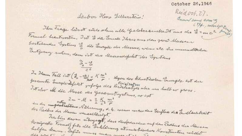 “Su pregunta puede ser respondida a partir de la fórmula E = mc2, sin necesidad de erudición”, escribió Einstein en la carta escrita en papel con el membrete de la Universidad de Princeton, de acuerdo con la traducción al inglés proveída por RR Auction.