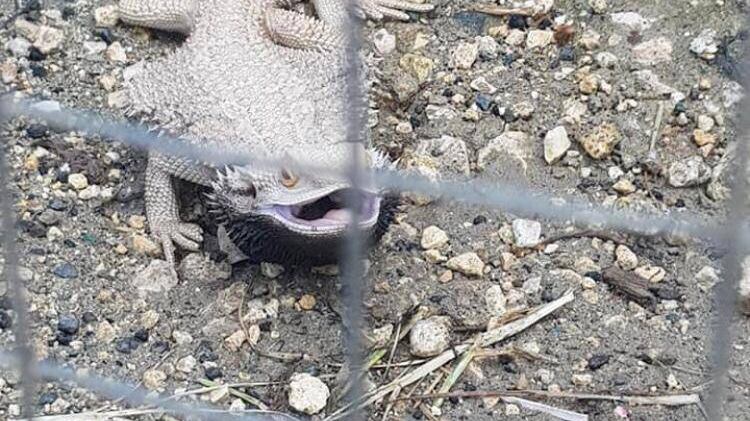 Los residentes del barrio Cuchillas, sector Muñiz, en Moca entregaron el sábado un dragón barbudo al Departamento de Recursos Naturales y Ambientales (DRNA), tras haber sido capturado en una jaula de gallinas.