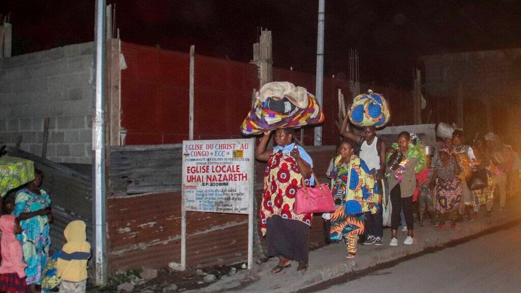 Las fuerzas de paz de la ONU indicaron que, en base a lo visto por vuelos de reconocimiento, no parecía que la lava se dirigía a Goma, pero aun así miles de personas huyeron despavoridos. Algunos se montaron en balsas en el Lago Kivu mientras otros emprendieron rumbo al Monte Goma, la montaña más alta de la zona. Por lo menos 3,000 personas cruzaron la frontera hacia Ruanda.