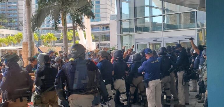 La Unidad de Operaciones Tácticas, conocida popularmente como la Fuerza de Choque, bloqueó el paso al Centro de Convenciones, de tal manera que nadie puede entrar o salir del lugar.
