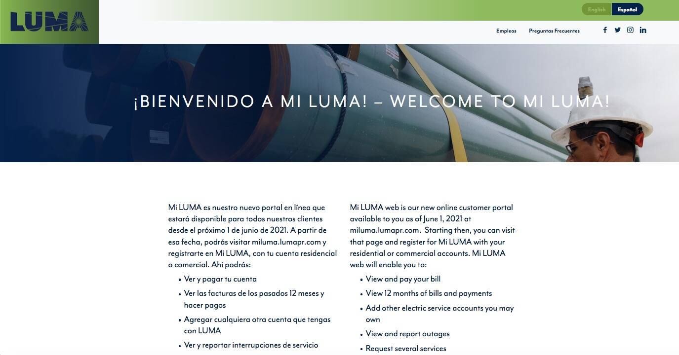 Los clientes son redirigidos a MiLuma, al intentar ingresar al portal de MIAEE para saldar las facturas. Sin embargo, los enlaces no están habilitados.