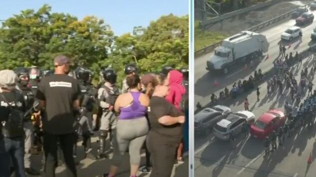 Mas temprano el director del Negociado de Tránsito de la Policía, Elvin Zeno, dijo en entrevista radial en NotiUno 630 que “dos guaguas escolares los dejaron en la vía de rodaje. Ellos se bajaron. Inmediatamente ocuparon los cinco carriles de la autopista. Pero ya hemos negociado con ellos. Habían dejado unos vehículos detenidos en la vía de rodaje. Traímos las grúas de la Policía. Inmediatamente al ellos ver la presencia de las grúas los movieron voluntariamente. Ya hemos recuperado dos carriles”.