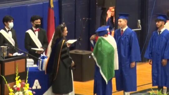 En un comunicado por separado, los funcionarios dijeron que “continúan trabajando para solucionar este problema con el estudiante y su familia de forma que reciba su diploma de la Secundaria Asheboro”.