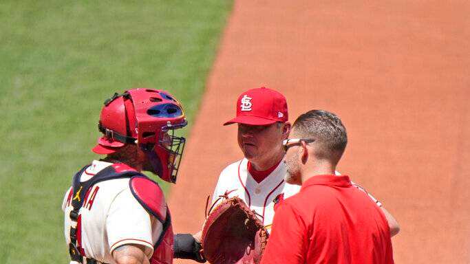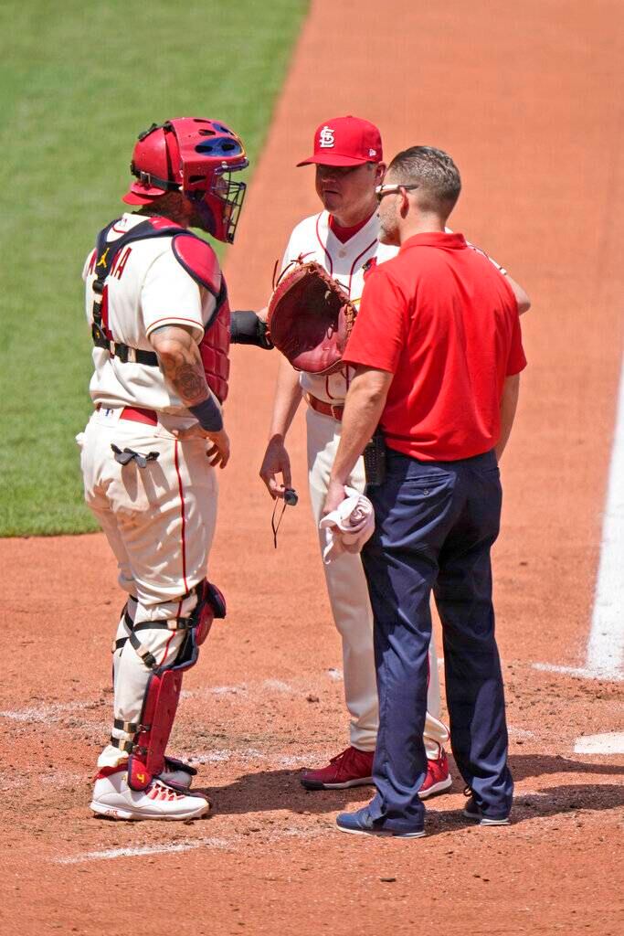Yadier Molina abandonó el juego en el cuarto inning, tras sufrir un golpe en una rodilla, y los Cardenales de San Luis hilaron cuatro derrotas consecutivas por primera vez en el año, al caer el sábado 5-2 ante los Rojos de Cincinnati.