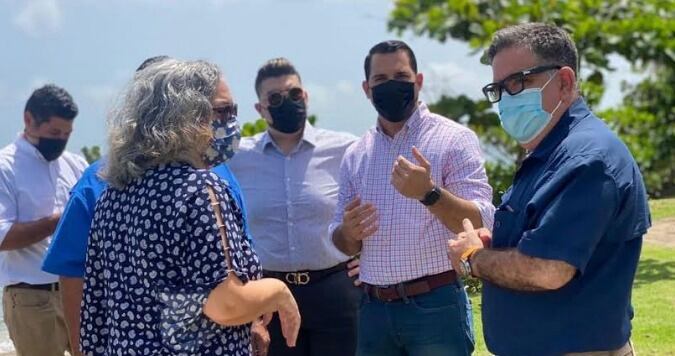 El alcalde de Aguada, Christian Cortés Feliciano, se reunió con el secretario de Asuntos Municipales de la Fortaleza, Javier Carrasquillo, así como con el secretario del Departamento de Recursos Naturales y Ambientales (DRNA), Rafael Machargo y el secretario Asociado del Departamento de la Vivienda(DV), Christian Pagán, para identificar opciones de mitigación y enfrentar de manera planificada el tema de la erosión costera en los barrios turísticos de Guaniquilla y Espinar.