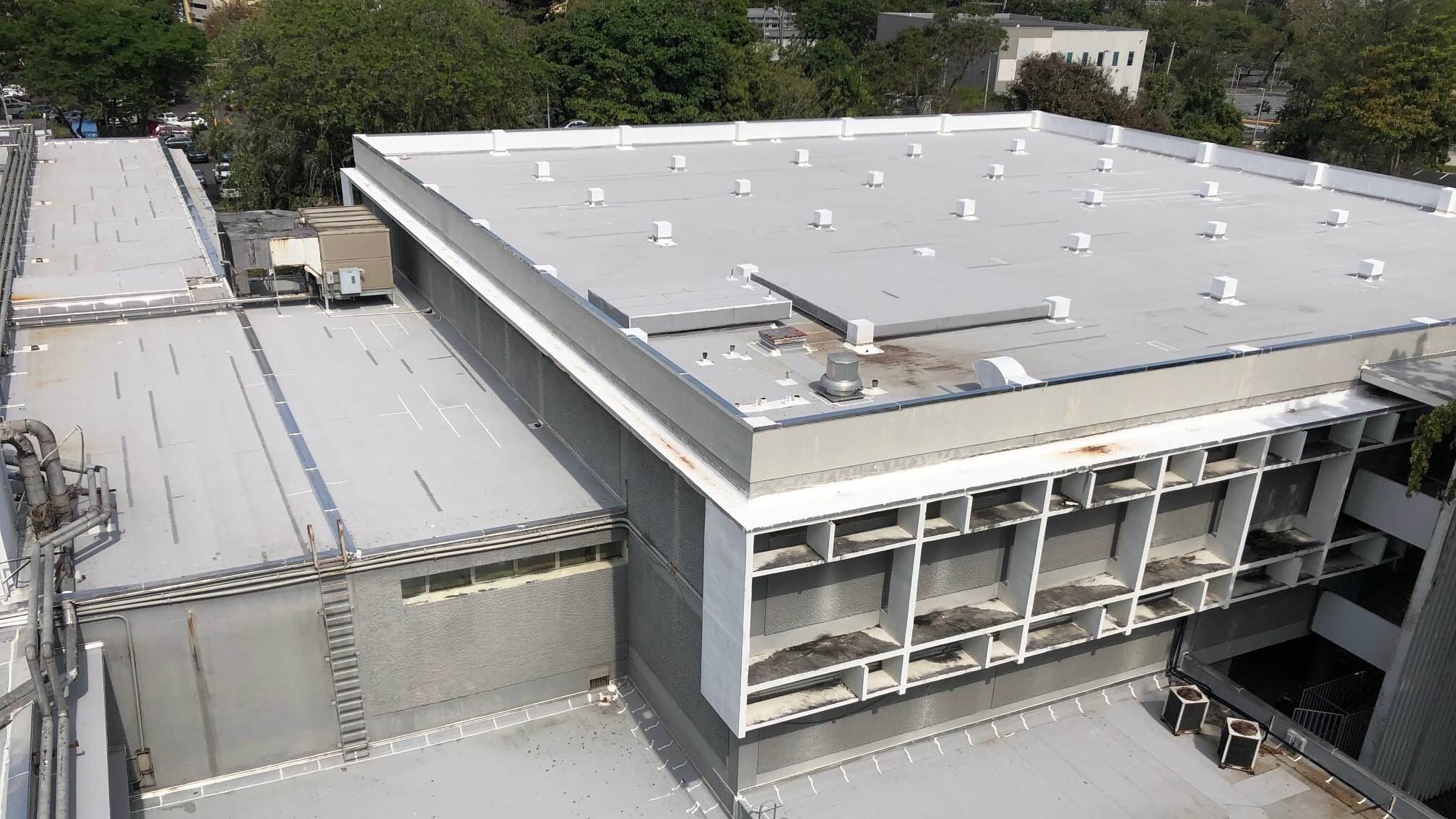 Estos trabajos -que abarcaron los tres edificios que conforman la Biblioteca- consistieron en la remoción del material dañado, la preparación de la superficie de losa de techo para la instalación de planchas de aislamiento y de una membrana granulada de impermeabilización autoadhesiva. Asimismo, se trabajaron las paredes aplicando en su superficie una membrana impermeabilizante. Como parte de estos trabajos, también se reemplazaron las bases de los conductos de agua helada del sistema de acondicionadores de aire -al igual que parte de su aislación- y se instaló una plantilla de paso para establecer un camino de acceso para las distintas compañías que realizan servicios de mantenimiento a los equipos localizados en la azotea de los edificios.