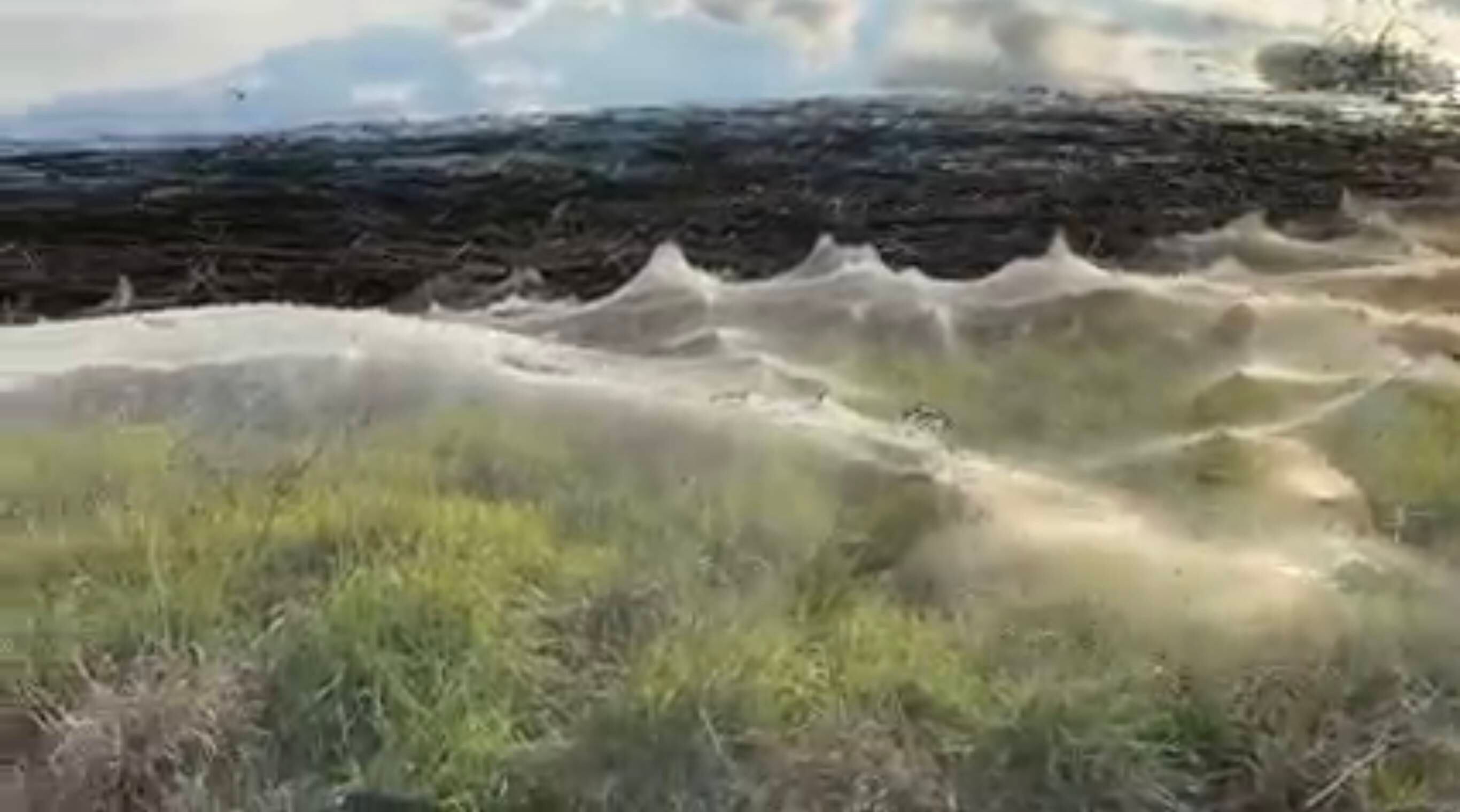 ¿La bellezas de la naturaleza? En Australia registraron un sinfín y gigantesco grupo de telarañas de más de 1 kilómetro de longitud cubriendo una campo de dicho país.