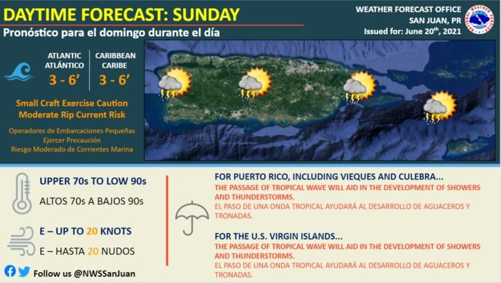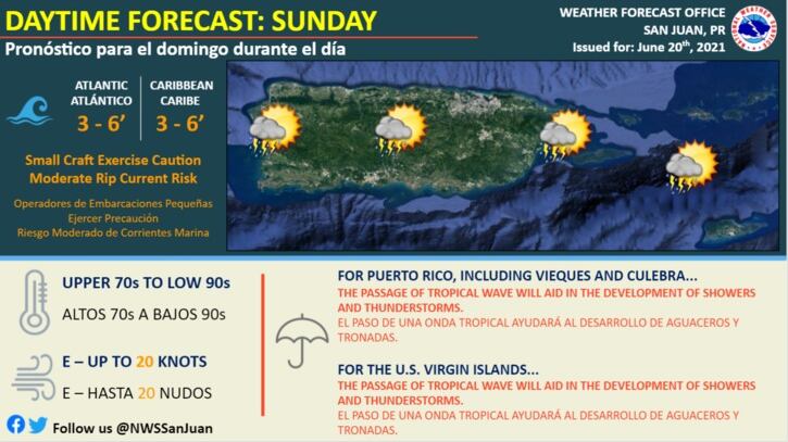 Para este domingo se espera el paso de una onda tropical que va a ayudar al desarrollo de aguaceros y tronadas, informó la oficina en San Juan del Servicio Nacional de Meteorología (SNM).