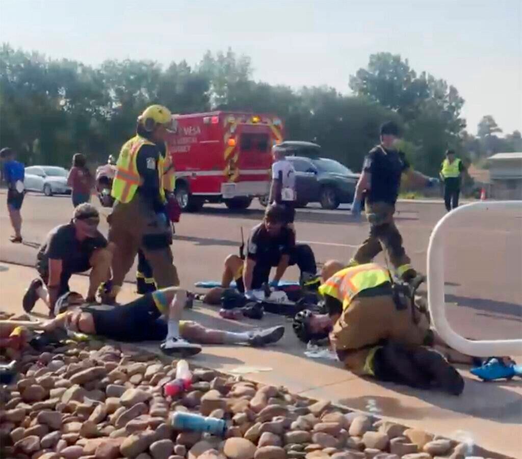 Los testigos dijeron que cascos, zapatos y bicicletas destrozadas quedaron sobre la calle después del accidente, y un neumático terminó atascado en la parrilla de la camioneta que embistió a los ciclistas alrededor de las 7:25 de la mañana del sábado en el centro de Show Low.