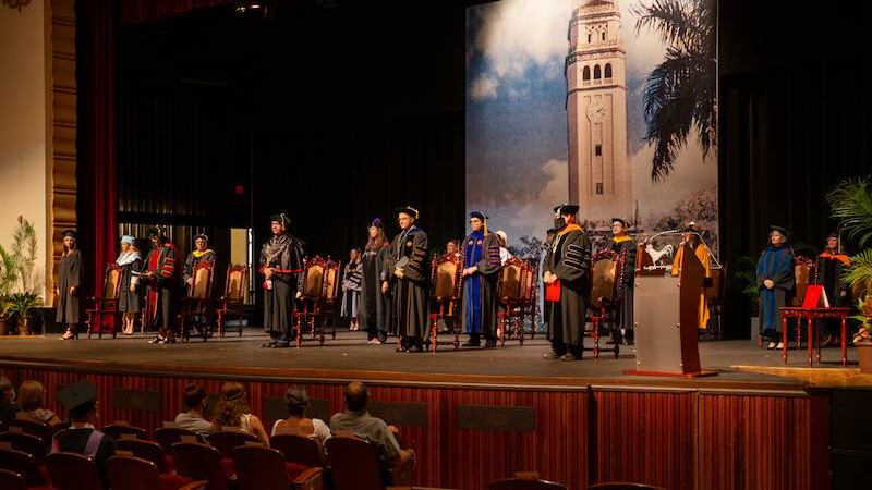 “Celebramos con ímpetu la culminación de una de las etapas más significativas de su vida, la cual representa un cimiento firme para su desarrollo profesional y personal. En este momento histórico han superado desafíos jamás imaginados durante su travesía por el gran Recinto de Río Piedras, el campus más antiguo de nuestra centenaria institución. También han vivido gratas experiencias y han demostrado su grandeza y fortaleza. Con dedicación, esfuerzo y compromiso han logrado su grado académico de manera extraordinaria y digna de admiración. Graduandos, nos llenan de gran orgullo”, expresó Haddock Acevedo durante la ceremonia de colación de grados.