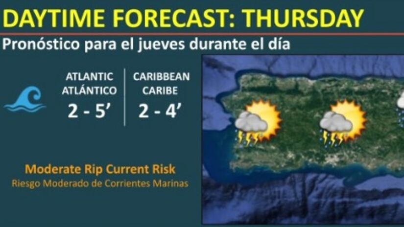 Hay riesgo moderado de corrientes marinas para las costas del norte, este y sureste de la isla grande de Puerto Rico, así como para las islas municipios de Vieques y Culebra.