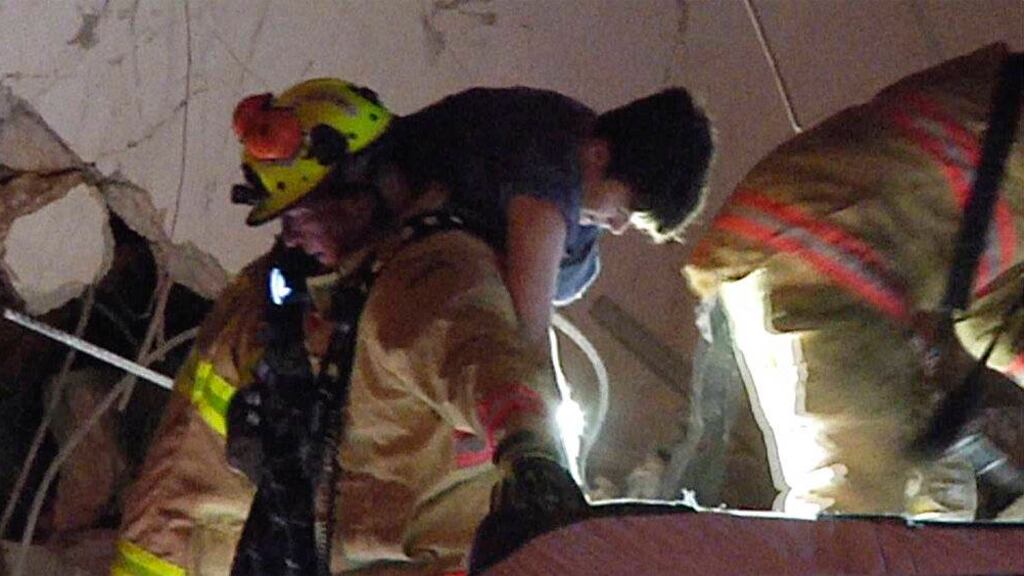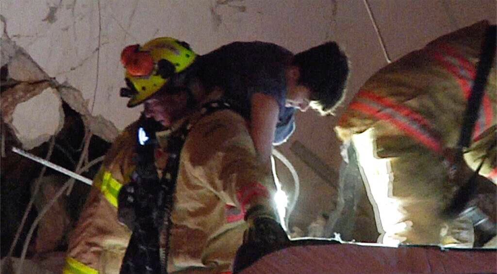 Había personas en la calle señalando el enorme hueco y la nube de polvo que salía de donde se había derrumbado una torre de apartamentos frente al mar. Los equipos de rescate y bomberos todavía no llegaban al lugar, y la parte trasera del edificio esta sumida en un silencio inquietante. Mientras tomaba fotos de los escombros, escuchó lo que parecía ser la voz de un niño.