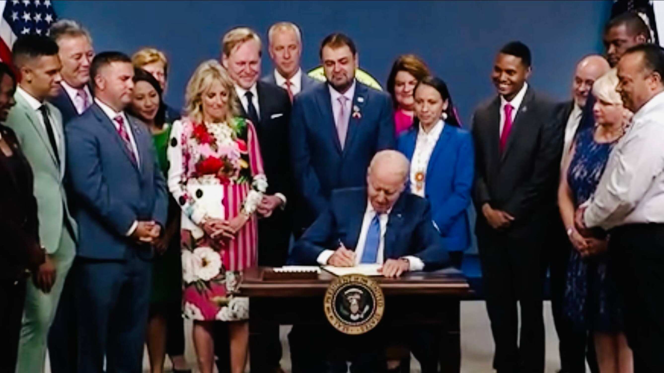 La comisionada fue invitada por el presidente Biden a la Casa Blanca para la ceremonia de firma de la ley a la que asistieron otros 16 congresistas, incluyendo los puertorriqueños Darren Soto y Ritchie Torres, la primera dama de los Estados Unidos, la doctora Jill Biden y familiares de una de las víctimas puertorriqueña, Amanda Alvear, con quien compartió González Colón.