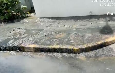 En un video publicado por un usuario de redes sociales identificado como Marcos Pérez, se ven las aguas residuales cayendo en el alcantarillado pluvial.