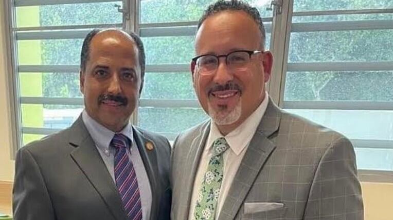 El senador por el distrito de Ponce y presidente de la Comisión de Gobierno, Ramón Ruiz Nieves, se reunió este martes con el secretario del Departamento de Educación Federal, doctor Miguel Cardona, como parte de la visita del funcionario a Aguada, donde Ruiz insistió en la importancia de atender con urgencia la situación de las escuelas destruidas por los terremotos en los pueblos del sur.